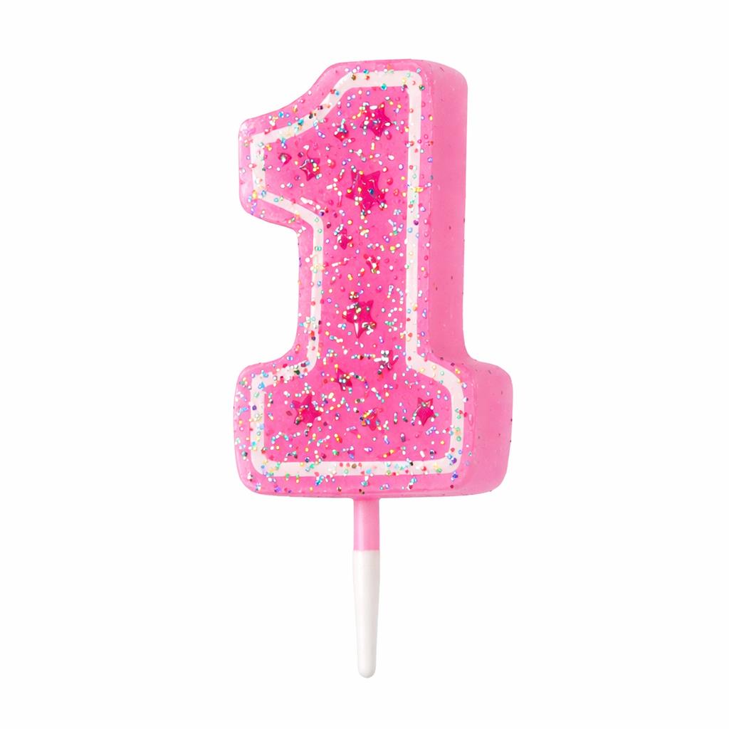 Świeczka Brokat "1" z gwiazdkami Różowa
