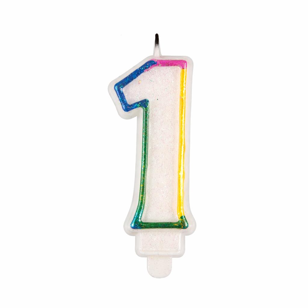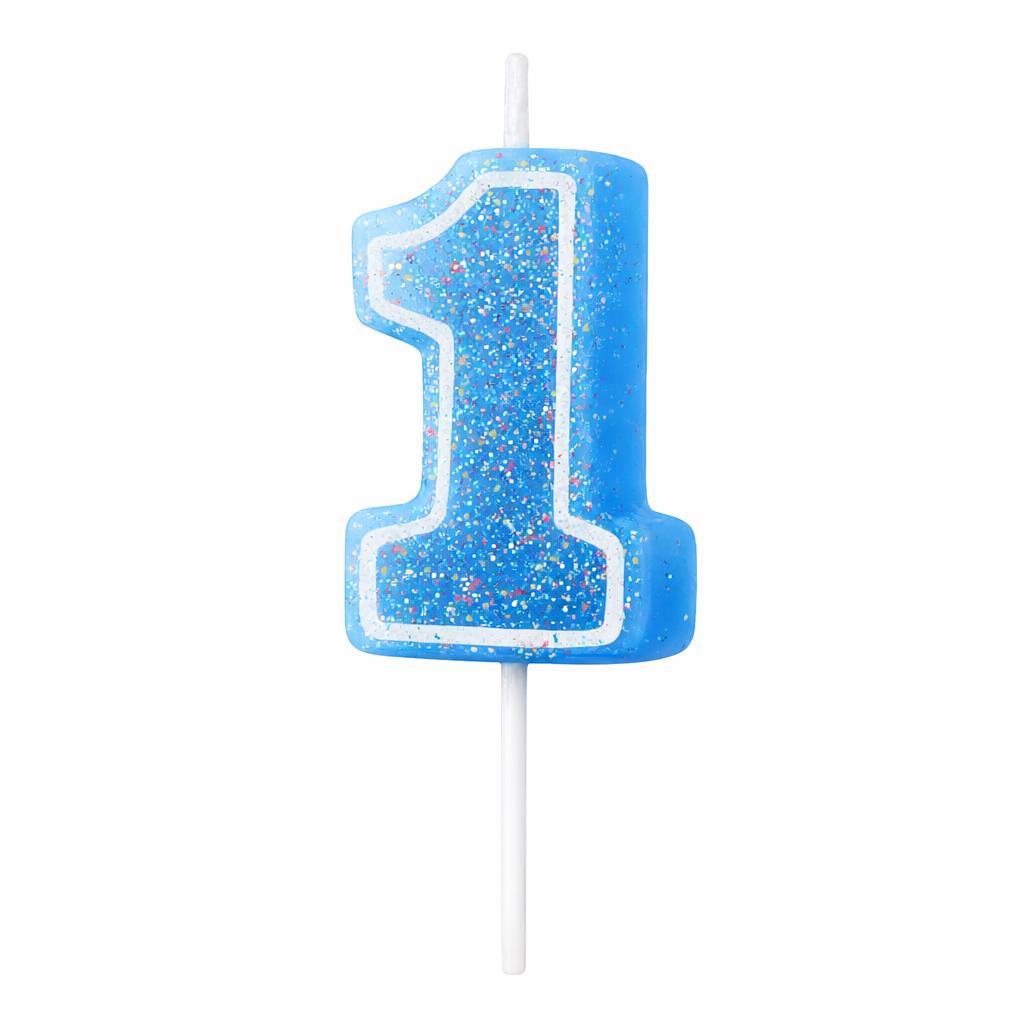 Świeczka Brokat "1" z gwiazdkami Niebieska