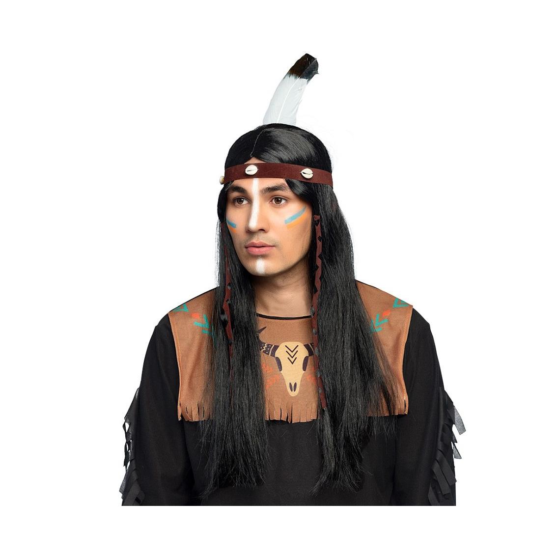 PERUKA INDIANINA TAKODA, CZARNE WŁOSY Z OPASKĄ