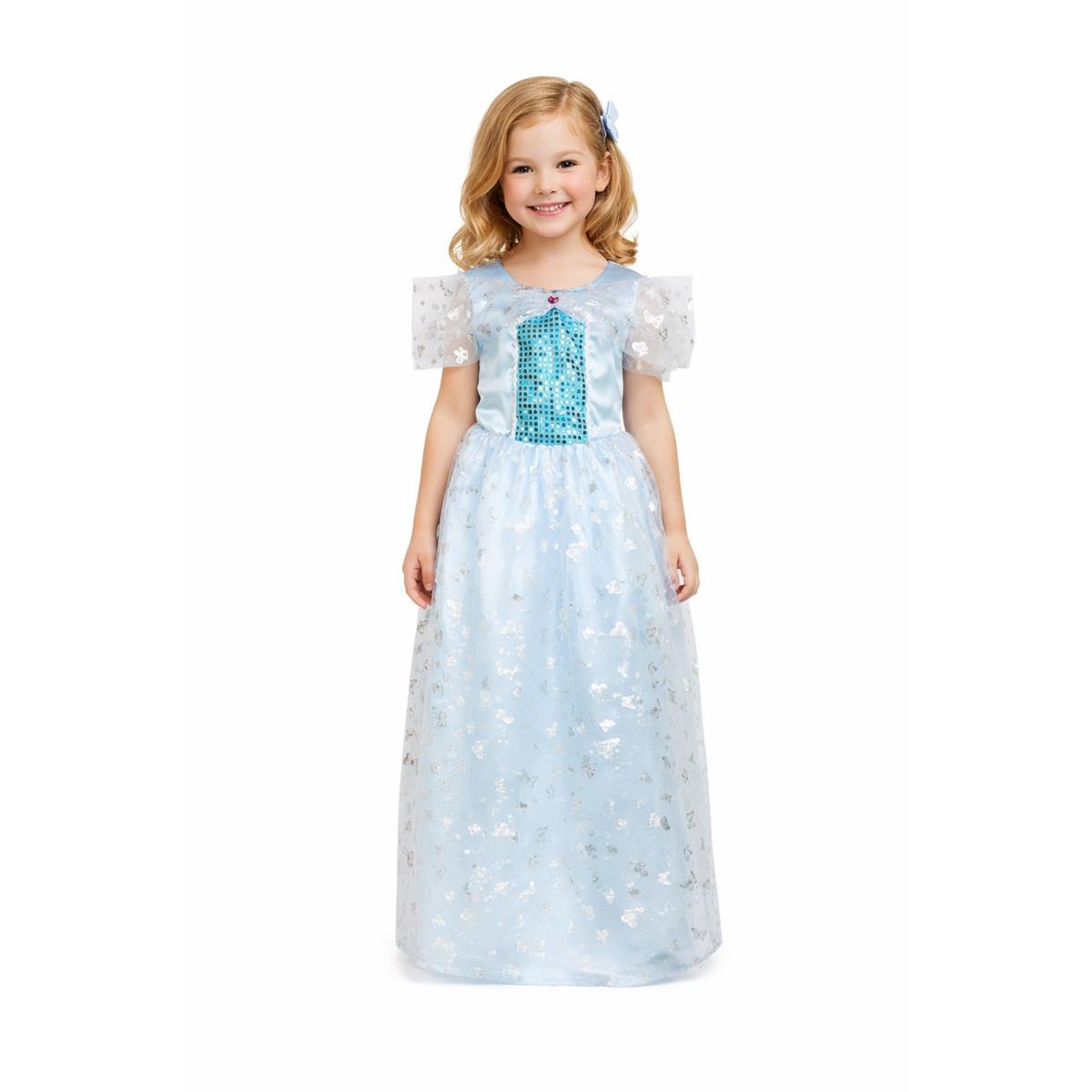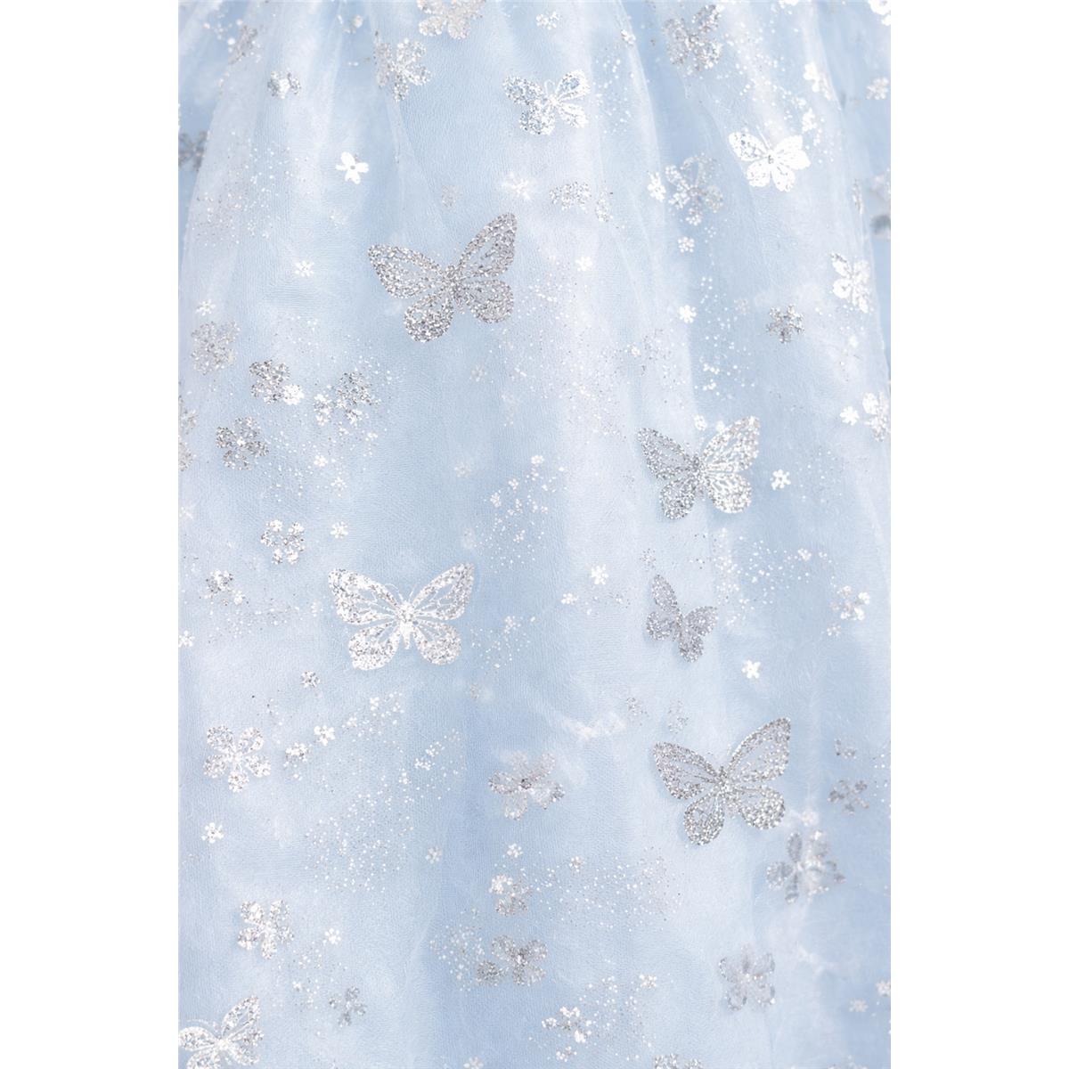 Sukienka Księżniczka Niebieska to idealny wybór dla małej dziewczynki pragnącej poczuć się jak prawdziwa księżniczka. Wykonana w pięknym niebieskim kolorze, charakteryzuje się eleganckim krojem oraz delikatnymi detalami. Aplikacje w postaci srebrnych motylków nadają sukience wyjątkowego uroku i sprawiają, że jest doskonałym przebraniem na bal przebierańców, przyjęcia czy przedstawienia.